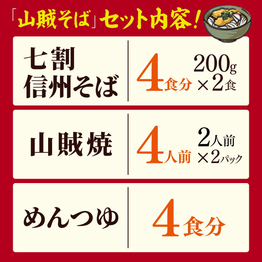 【ふるさと納税】山賊そば 4人前(めんつゆ付き)|山賊焼 蕎麦 七割信州そば そば 塩尻名物 セット 4人前 冷凍 めんつゆ付 長野県 塩尻市
