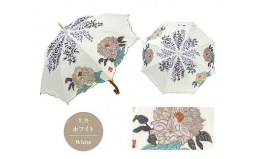 【シノワズリーモダン京都】花鳥オーガンジーカットワーク刺繍かわず張り長日傘 ホワイト[ 京都 日傘 ブランド 女優日傘 完全遮光 晴雨兼用 カットワーク刺繍 おしゃれ 軽量 人気 おすすめ ギフト プレゼント お取り寄せ 通販 送料無料 ふるさと納税 ]