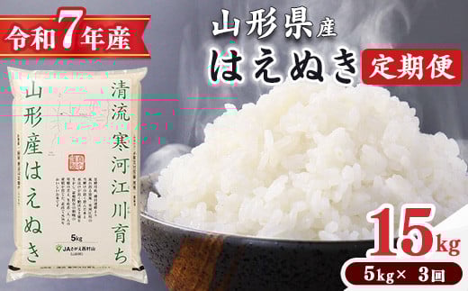 <2026年2月下旬開始>【令和7年産 定期便】 はえぬき計15kg!お米 定期便(5kg×3回)!清流寒河江川育ち 山形産はえぬき 2025年産 049-C-JA021-202602下