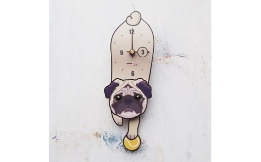 D-97F3 パグ-犬の振り子時計花03.RED C-CD-097A