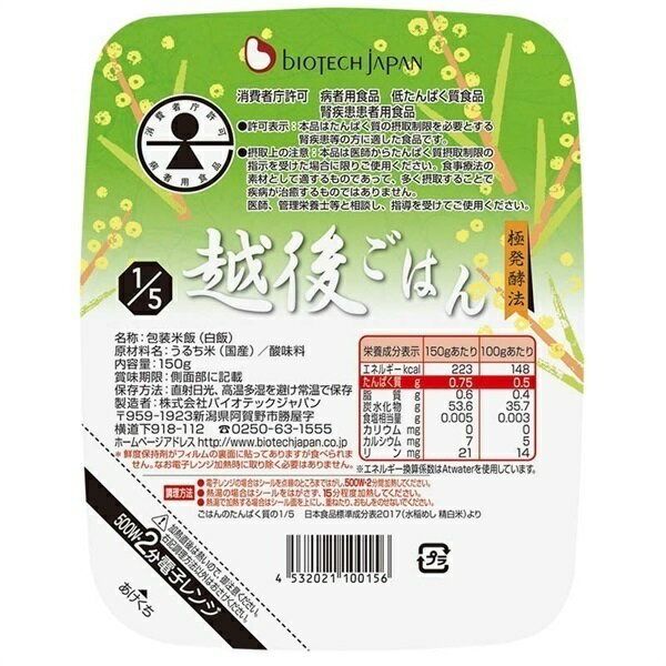 - 【ふるさと納税】【低たんぱく質食品】【3ヶ月定期便】 1/5 越後ごはん 150g×20個 ×3回 バイオテックジャパン 越後シリーズ