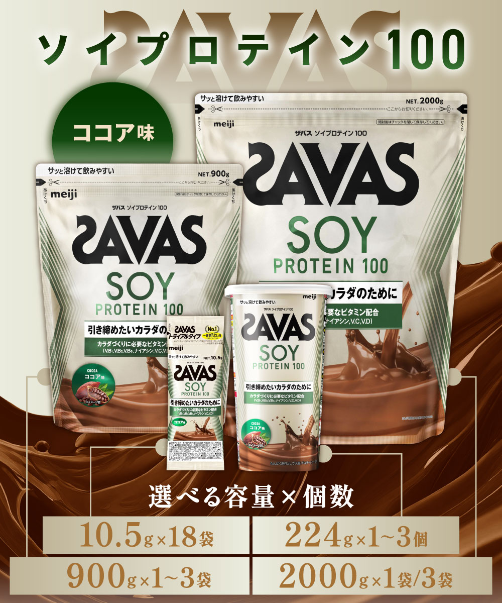 【ふるさと納税】明治 ザバス ソイ プロテイン 100 ココア 味 計189g~計6kg 加工食品 体づくり ボディメイク 筋トレ タンパク質 体力づくり 運動 部活 アスリート 粉末プロテイン
