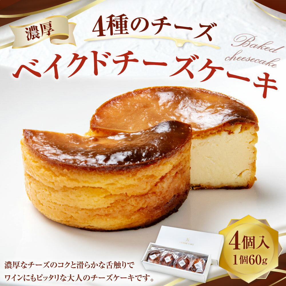 【ふるさと納税】4種のチーズのベイクドチーズケーキ 60g×4個 セット ケーキ チーズ お菓子 スイーツ デザート ミニ 個装 ギフト 贈り物 贈答 国産 冷凍 送料無料