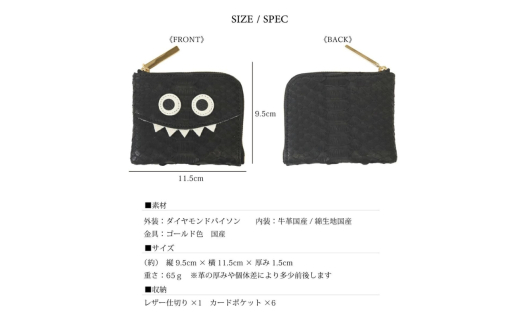 - [№5258-8179]1124【 パイソンモンスターmini / 全11色 】 高級感のある薄くて軽い / 思わず誰かに見せたくなるモンスターコンパクトミニL字財布【 全11色 】 財布 ミニ財布 名刺入れ 日本製 レディース メンズ ブラック