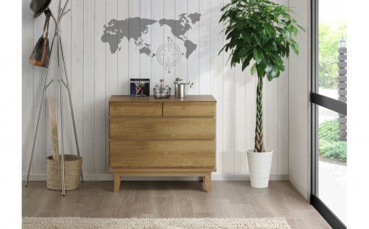 - 【レッドオーク】大川家具 幅90cm 3段 チェスト -ramsey-ラムジー