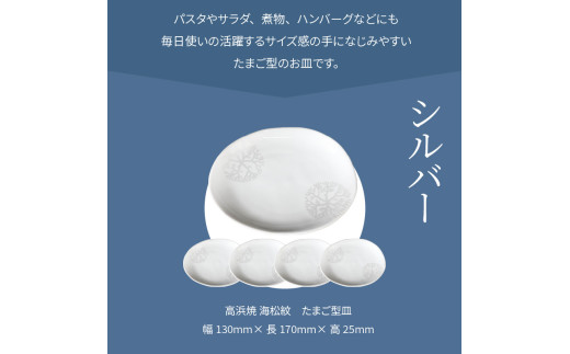 S026-144_天草 高浜焼 たまご型皿 シルバー5枚