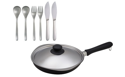 - マグマプレート加工フライパン25cm蓋付き & ♯1250 ディナースプーン2本 & ディナーフォーク2本 & ディナーナイフ2点 セット (ecoBOX) FC022095