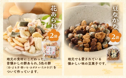 さんまぜ工房の和菓子セット(花あられ 2袋&豆なかな 2袋)あられ 豆菓子 おすすめ お菓子 やみつき 馬瀬 下呂市