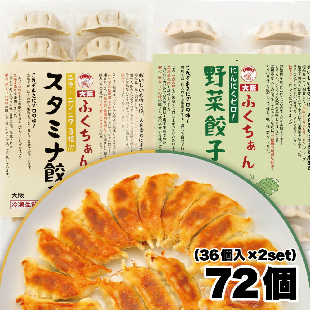 【ふるさと納税】【大阪名物】大阪ふくちぁん 野菜餃子 冷凍生餃子×スタミナ餃子冷凍生餃子 [各36個入×2パック 計72個]