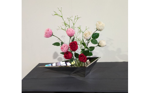 - ステンレス器 折り紙~オリガミ~ / 大河内 花器 小物入れ 鑑賞用 飾り器 2代目山本晴久 1点もの ステンレス 三重県 度会町