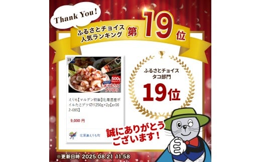 えりも【マルデン特製】北海道産ボイルたこブツ切り250g×2p