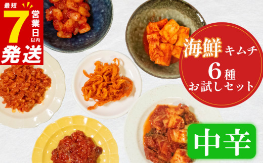 中辛 キムチ 6種 詰め合わせ 食べ比べ 小分け 白菜 長芋 たこ するめ チャンジャ らっきょ アソート バラエティーセット ごはんのお供 ピリ辛 お米 ごはん ビール 酒 おつまみ 漬物 いか 昆布 国産 りんご 桃 果物 魚 海鮮 野菜 BBQ 焼肉 惣菜 キムチ鍋 キムチチャーハン お試し 大阪府 松原市