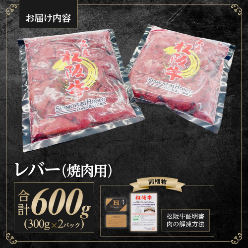 - 松阪牛レバー(焼肉用)300g×2P真空パック 国産牛 和牛 ブランド牛 JGAP家畜・畜産物 農場HACCP認証農場 牛肉 肉 高級 人気 おすすめ 神戸牛 近江牛 に並ぶ 日本三大和牛 松阪 松坂牛 松坂 赤身 BBQ キャンプ 贈答 三重県 多気町 SS-109