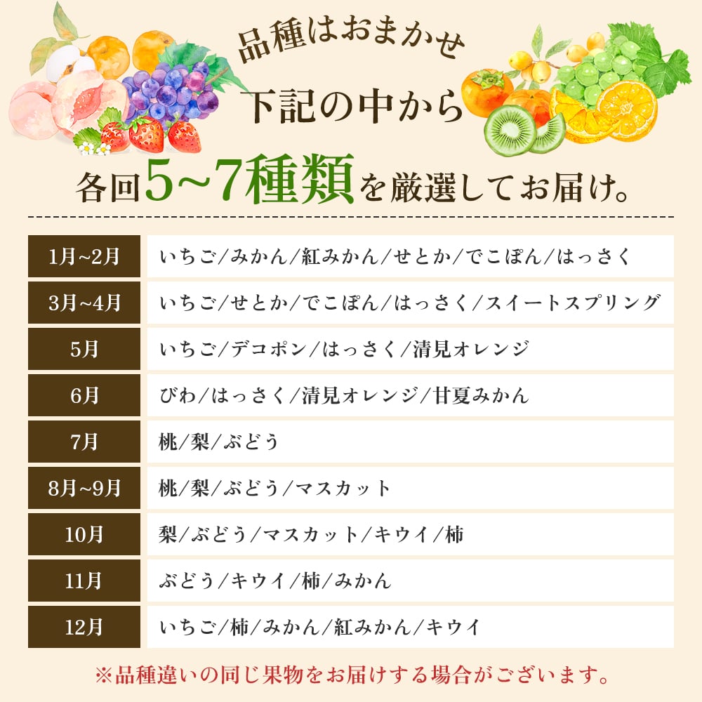 旬を見極めた、厳選フルーツ詰合せ【観音寺コース-極-】2ヶ月連続