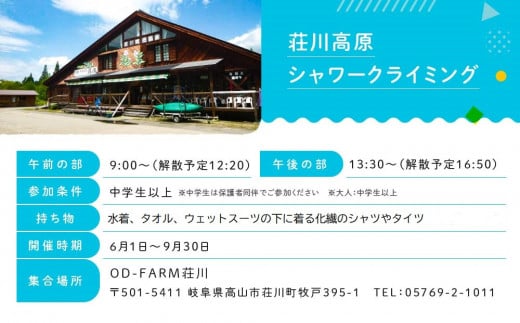 - OD-FARM荘川【中学生以上】荘川高原ファミリーシャワークライミング 大人3名 | 川 滝 遊び 体験 夏 思い出 子供 親子 家族 飛騨高山 (株)アウトドアサポートシステム AB001