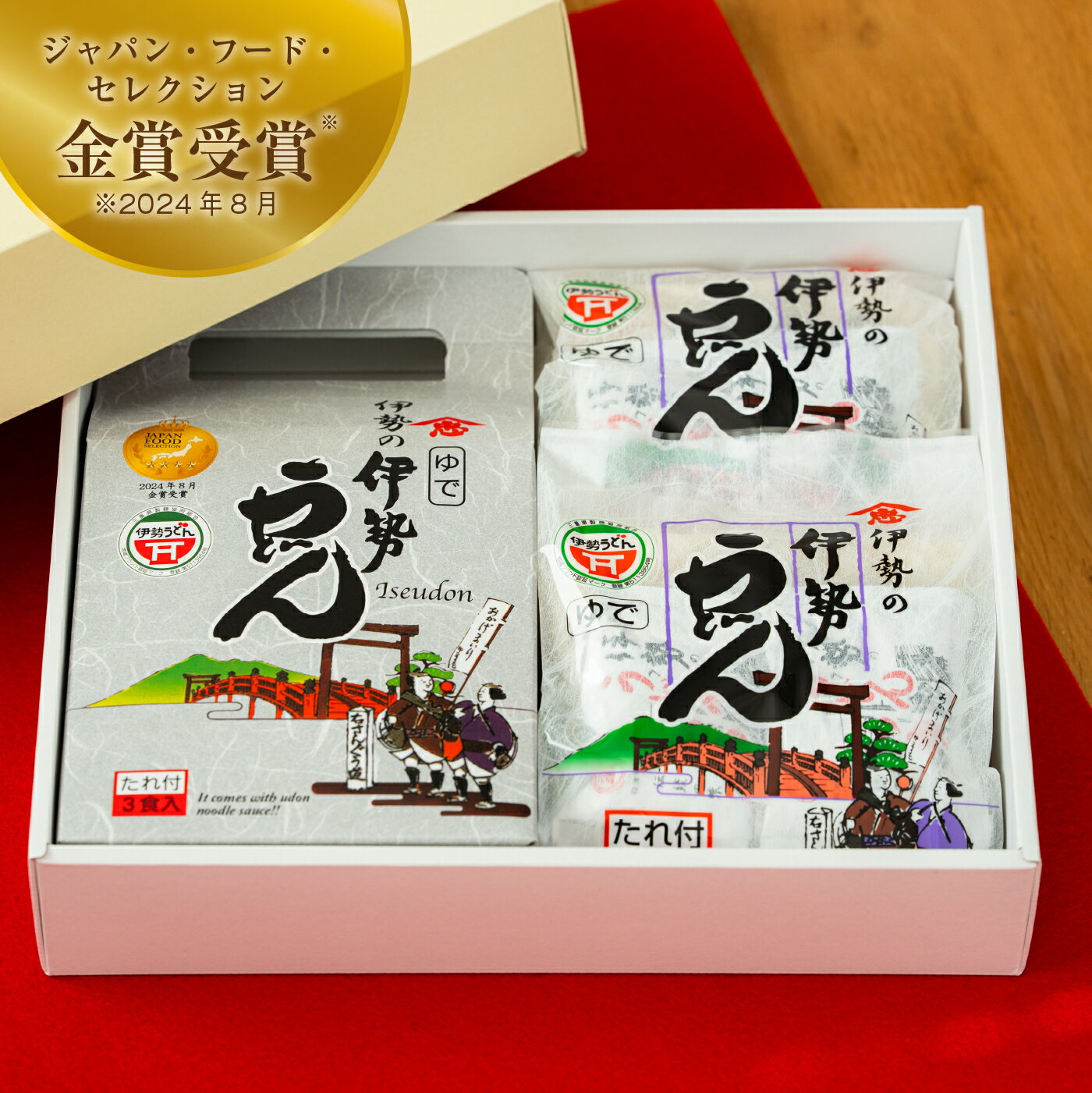 伊勢の名物、伊勢うどんがもらえます。ずんぐりとした太めのうどんに、真黒いタレが絡む独特の味わいが特徴です。伊勢市民に愛され、神宮参拝客のお土産としても人気があります。昔ながらの製法で作られたこのうどんは、一度食べたらやみつきになる美味しさです。内容は7食セットで、3食入りが1袋、2食入りが2袋の構成です。常温保存が可能で、賞味期限は60日間。伊勢の伝統的な味を家庭で楽しめる一品です。