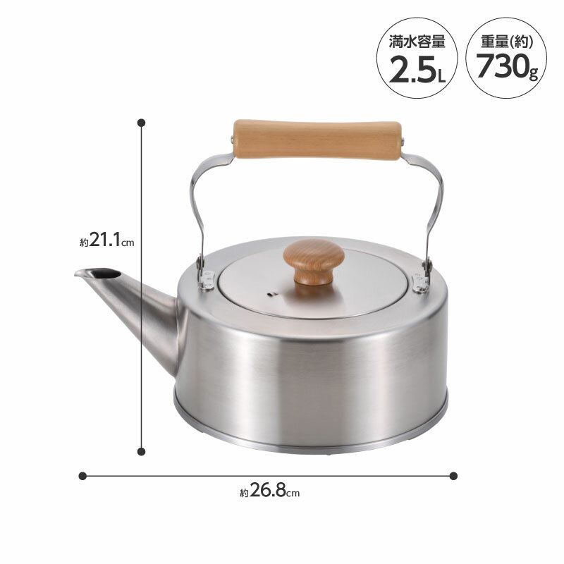 - 【ふるさと納税】CS-004 千歳 木柄ストレートケトル2.5L【 やかん 日本製 ステンレス 直火 ih コンパクト ケトル おしゃれ ガス ステンレス キッチン キッチン用品 送料無料 燕三条 新潟県 燕市 】