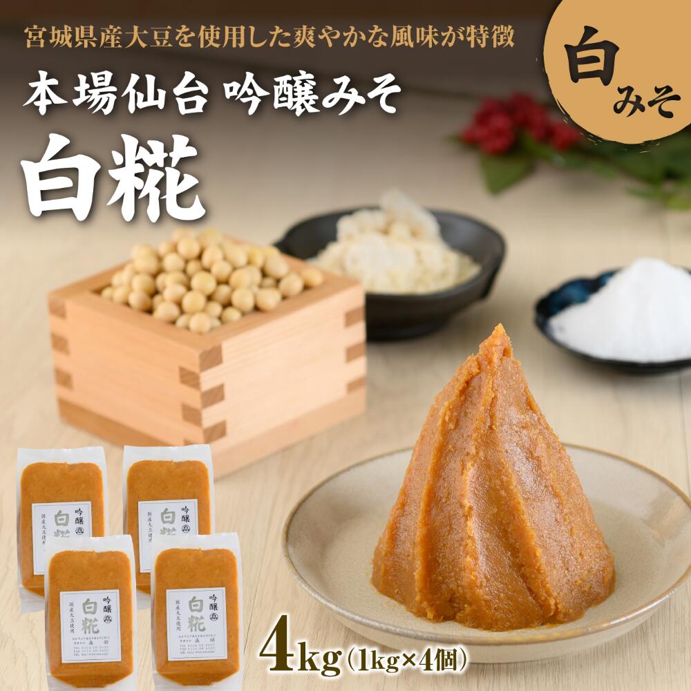 【ふるさと納税】 吟醸味噌 白糀 1kg×4個 長期保存 完熟 miso 熟成 長期熟成 白味噌 味噌 白糀 こだわり 老舗 ふるさと納税 宮城県 白石市 白石 【07153】