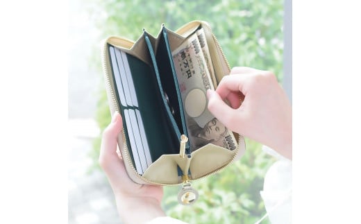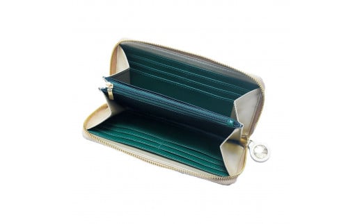 ヌメ革のミニジップウォレット ブルーグリーン[F4570]