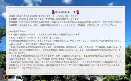 - 【2025年先行予約】[なんばふぁーむ]岡山県産 黄金桃 3.0kg(9~13玉)[ギフト用]