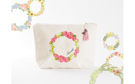 - 2月【名入れオーダー】ブルミア 誕生花が咲き続けるポーチ Lサイズ チャーム付き