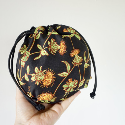 - ~べに花の郷桶川市~<べに花柄のまんまる巾着>黒【1438034】