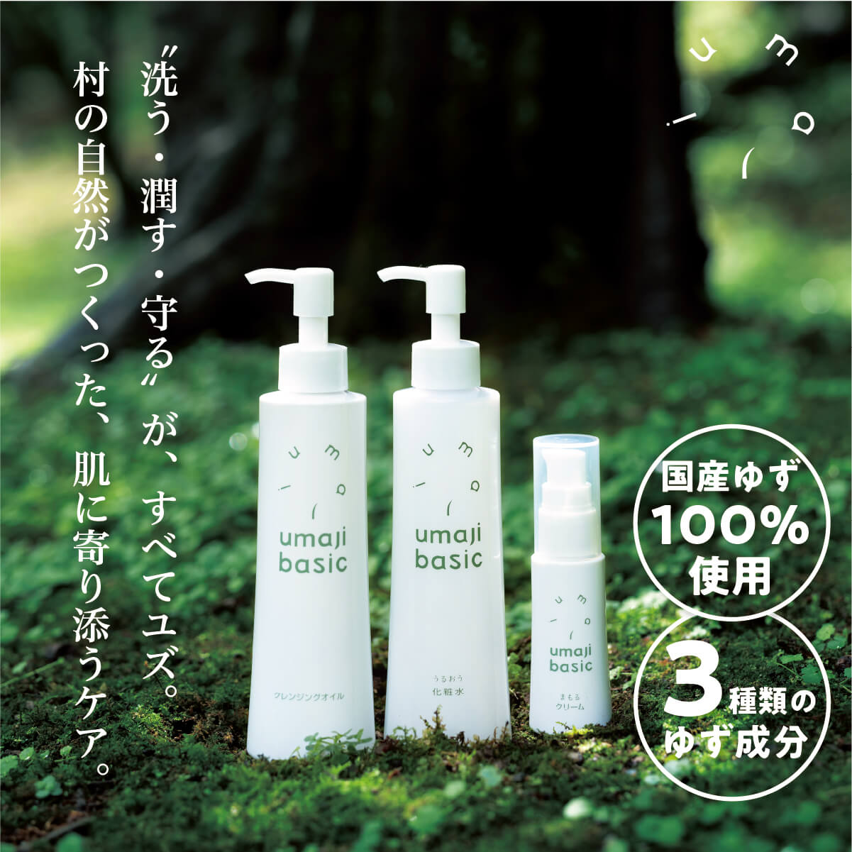 umaji スキンケア ベーシックセット クレンジングオイル 化粧水 美容クリーム 美容品セット 化粧品 美容 美肌 保湿 柚子 有機 オーガニック 高知県 馬路村