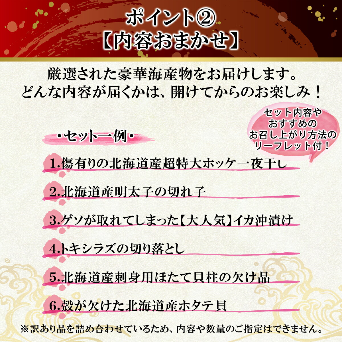 【ふるさと納税】訳あり 贅沢 豪華 おまかせ 海鮮セット 3kg 規格外 不揃い キズ 切り落とし ほたて 明太子 いか 魚介 魚介類 厳選 詰め合わせ SDGs フードロス 冷凍 送料無料