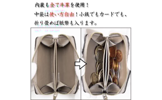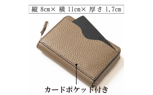 - 上品なトープのレザーコインケース カードポケット付き シュリンク型押し牛革 HEDGE【1282930】