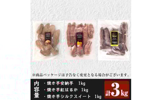 - a0001-3S3 冷凍焼き芋!畑の金貨・やきいも3種セット(紅はるか1kg・安納芋1kg・シルクスイート1kg)【甘いも販売所】姶良市 焼き芋 訳あり 冷凍 焼芋 やきいも さつまいも さつま芋 熟成 蜜