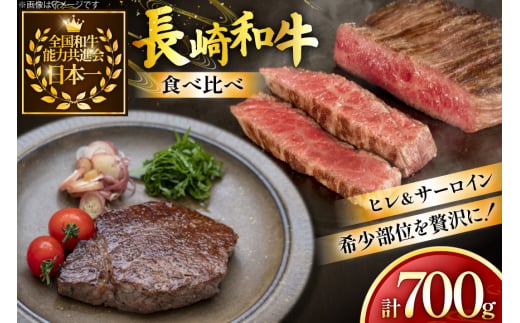 牛肉 長崎和牛 食べ比べ ヒレ サーロイン 各150g 2枚 計700g [黒牛 長崎県 東彼杵町 hs42bag750068] ヒレ肉 サーロイン ステーキ 赤身 食べくらべ