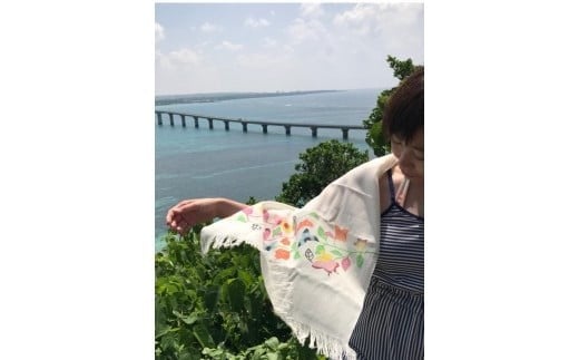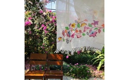 - 紅型染め ブーゲンビリアのショール 赤