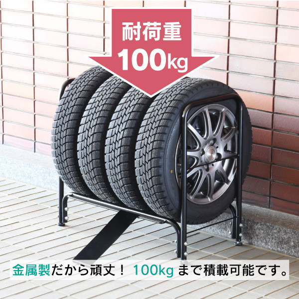 - タイヤ収納ラック 軽自動車用 スロープ付き タイヤスタンド 燕三条製 [川口工器] 【025S028】