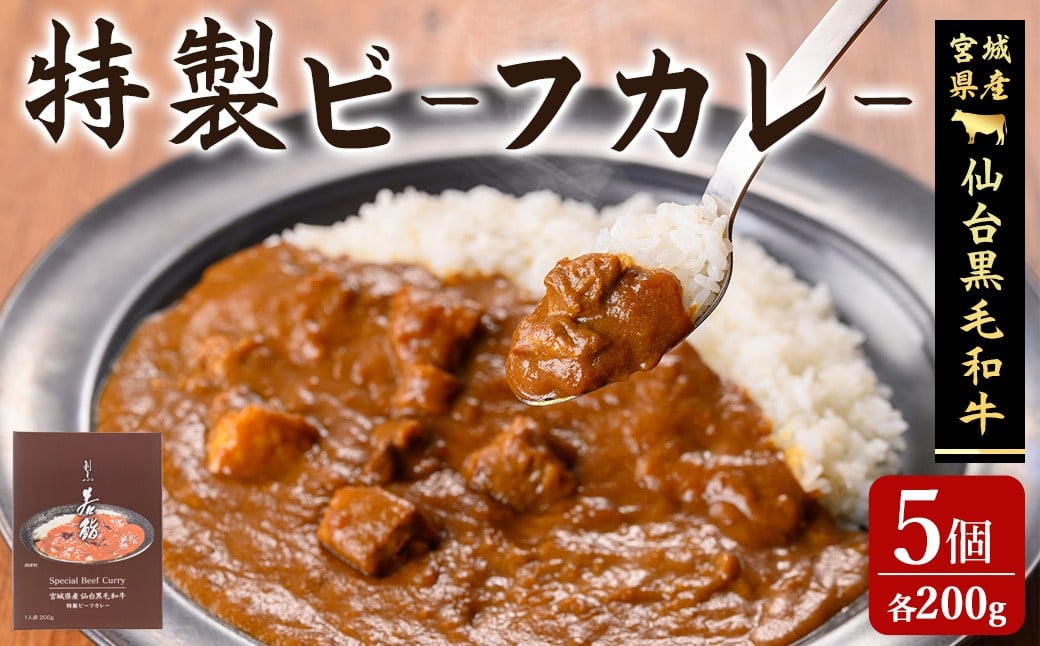 仙台黒毛和牛 特製ビーフカレー 200g×5個 かれー レトルト 電子レンジ お弁当 牛肉 お肉 宮城県産 【有限会社若寿司】tm020