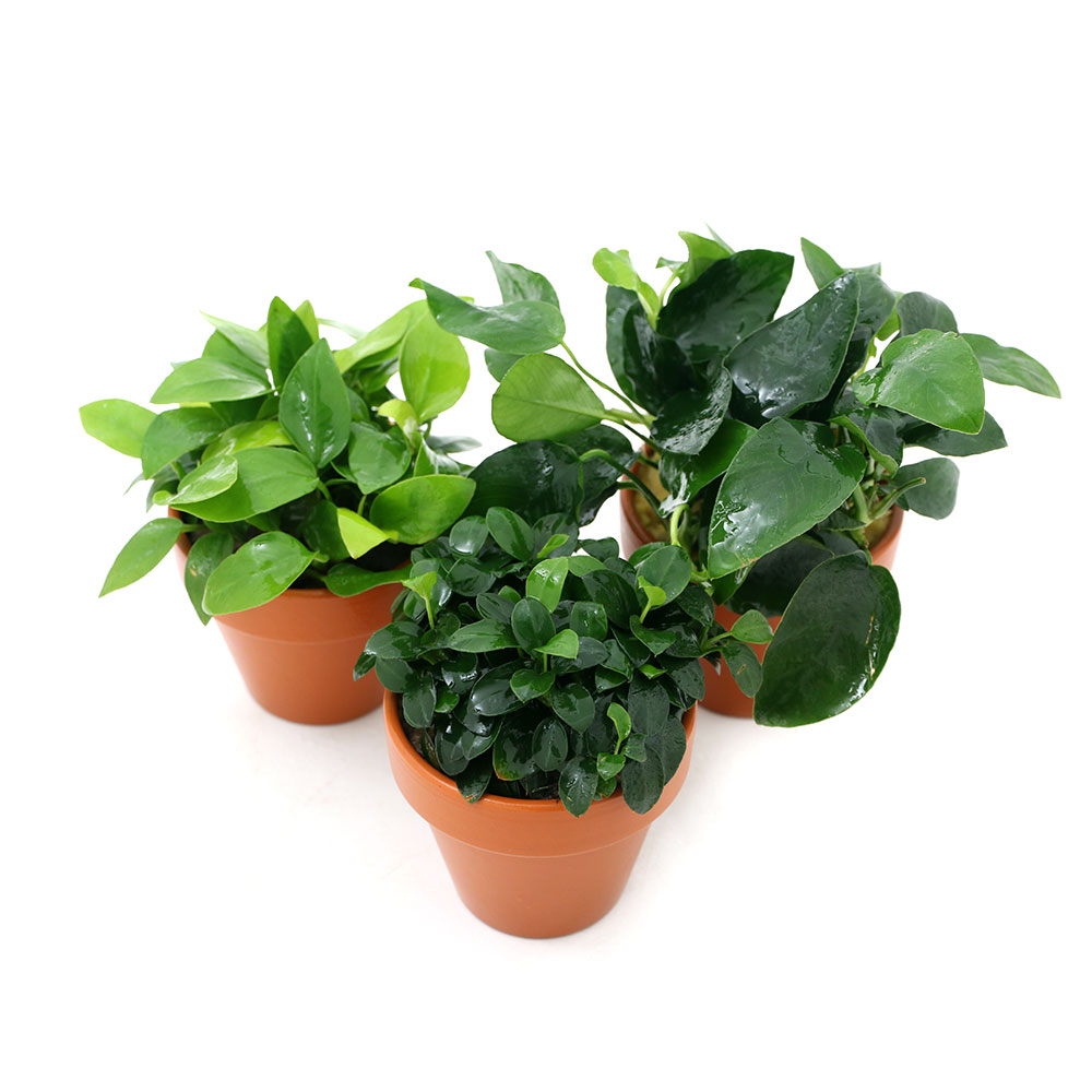 - 【ふるさと納税】水草 素焼き鉢 アヌビアス 3種 セット インテリア ナチュラル 自然 リラクゼーション 室内栽培 プレゼント 送料無料 趣味 緑 人気 オススメ 初心者 玄関 リビング キッチン 水槽 アクアリウム 水上葉 株式会社チャーム