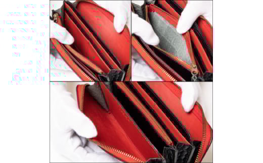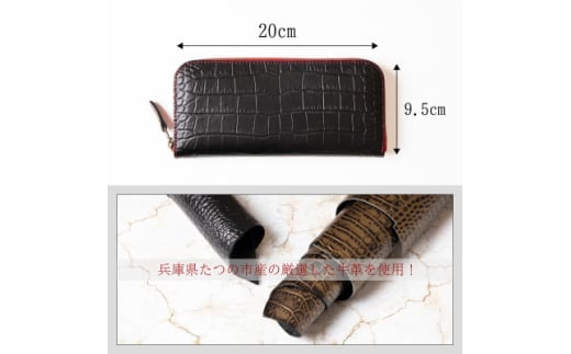 - [たつの市産クロコ型押し牛革]長財布(ブラック) ラウンドファスナータイプ HEDGE【1370494】