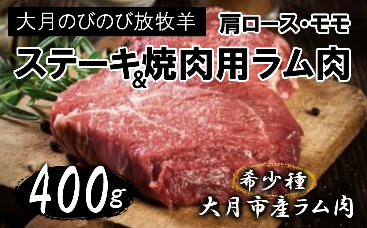 【先行予約】大月のびのび放牧羊【ステーキ&焼肉用ラム肉】400g(肩ロース200g モモ200g)