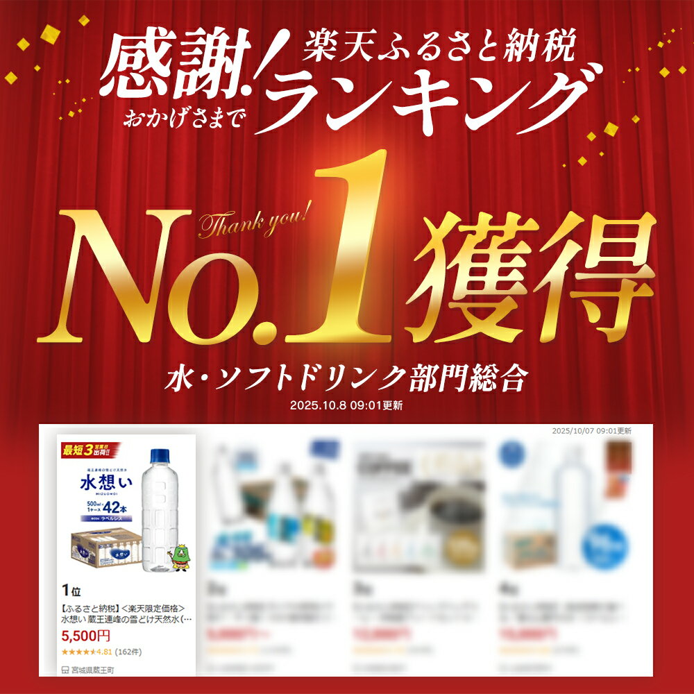 - 【ふるさと納税】<楽天限定価格>水想い 蔵王連峰の雪どけ天然水(ナチュラル ミネラルウォーター) ラベルレス 500ml×42本 軟水 最短3日発送 42本 500ml 大容量 アウトドア キャンプ 備蓄 防災 常温 ランキング 高評価 【04301-0570】