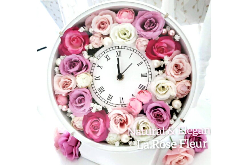 - 【ふるさと納税】フラワーアレンジメント 薔薇の花時計 ホワイト [tk06ayt140014 山形県 高畠町 La.Rose Fleur] 時計 バラ 薔薇 花 はな 造花 フラワー アレンジメント インテリア 飾付 置き型 壁掛け ハンドメイド