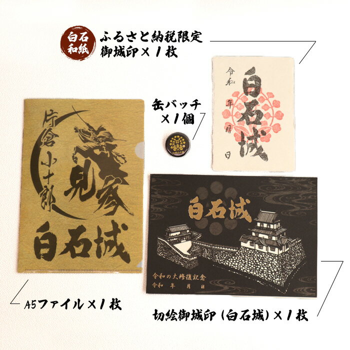 - 【ふるさと納税】白石城 切絵 御城印 セット 缶バッジ ファイル A5ファイル 白石和紙 セット グッズ 日本史 戦国 城 城めぐり 東北 小物 雑貨 ふるさと納税 宮城県 白石 白石市【25153】