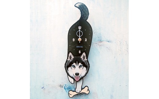 - D-154F5 シベリアンハスキー-犬の振り子時計花05.GREEN C-CD-154A