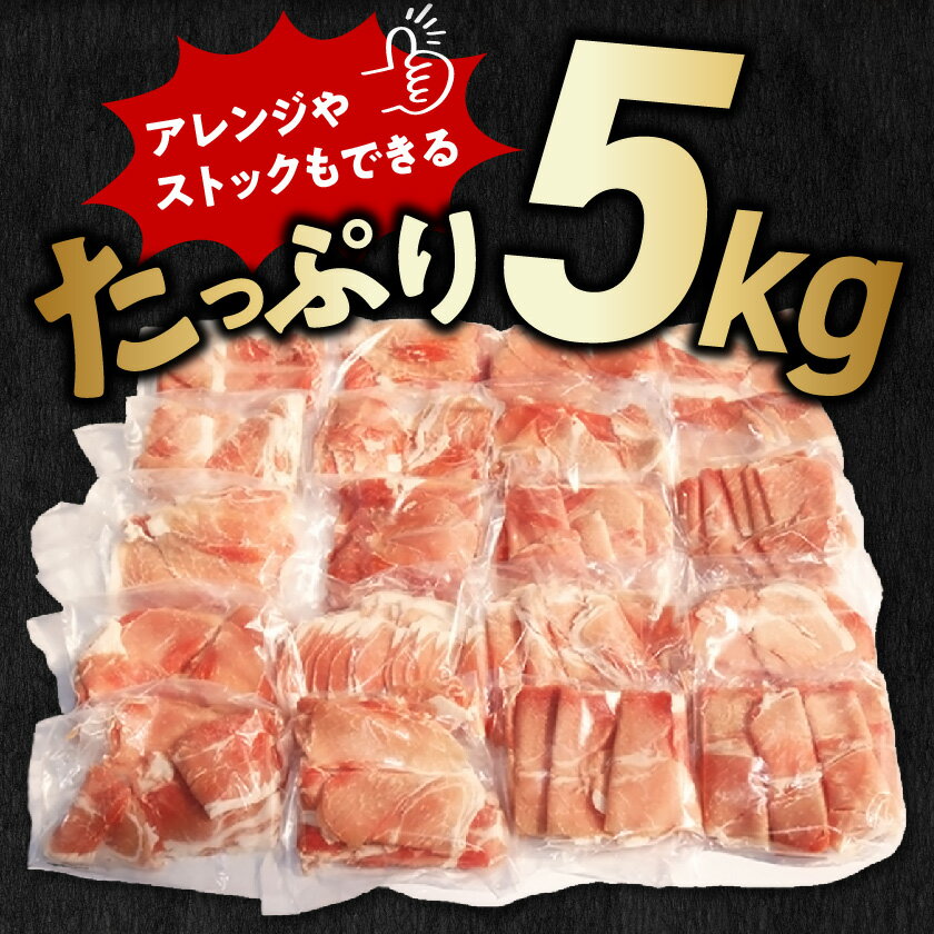 【ふるさと納税】国産豚肉切り落とし5kgラッキーセット - 国産豚 切り落とし 250g×20袋 5kg 豚肉 小分け パック 大容量 使い勝手抜群 お弁当 サラダ しゃぶしゃぶ 料理 アレンジ 送料無料 19-3601【宮崎県都城市は2年連続ふるさと納税日本一!】