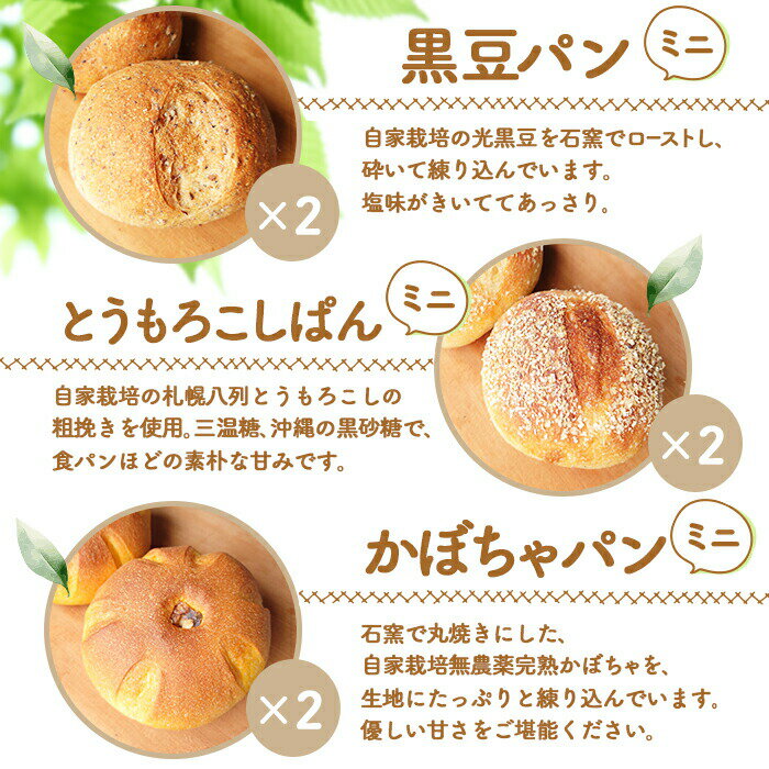 【ふるさと納税】お楽しみミニパン 3種 各2セット 詰め合わせ セット オンライン 申請 ふるさと納税 北海道 ニセコ 黒豆パン とうもろこしぱん かぼちゃパン パン ぱん ミニサイズ 美味しいパン 食べ比べ 朝食 朝ごはん 冷凍パン ニセコ町 【42003】