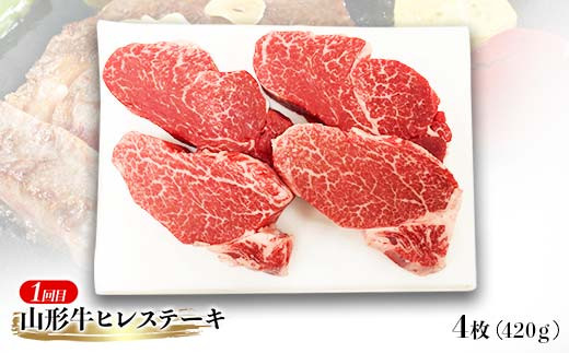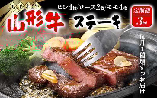 【高橋畜産食肉】≪定期便≫ 山形県産 山形牛 ステーキ 3回お届け(ヒレステーキ、ロースステーキ、モモステーキ) 黒毛和牛 F2Y-5558