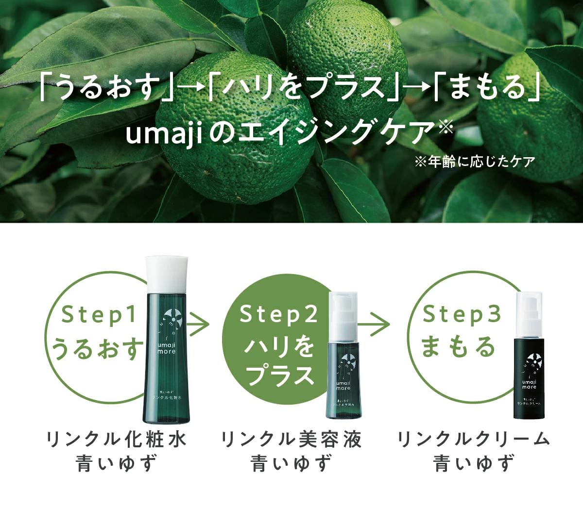 【umajiスキンケア リンクル美容液 青いゆず(30ml×1本)】化粧品 美容液 リンクル化粧品 スキンケア 美容 ケア エイジングケア 美肌 保湿 ゆず 種子油 柚子 ユズ種子油 オーガニック エタノール・パラベン・シリコンフリー プレゼント ギフト 贈り物 贈答用 母の日 敬老の日 熨斗 高知県馬路村【565】