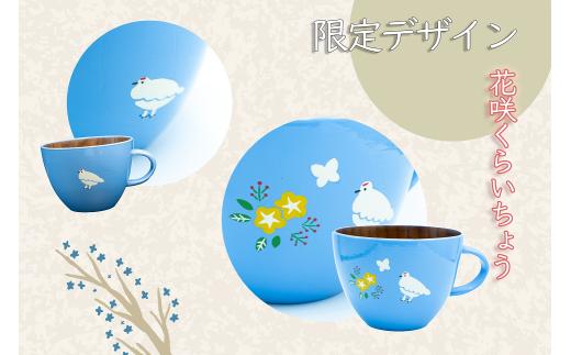 「信州の名工」による漆絵入り 木製スープマグ【青】(花咲くらいちょう)(Ba-032)