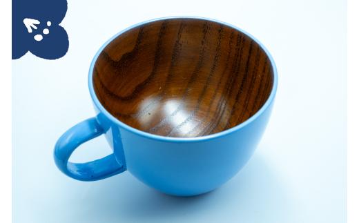 - 「信州の名工」による漆絵入り 木製スープマグ【青】(花咲くらいちょう)(Ba-032)