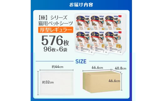 ペットシーツ 【極】シリーズ 厚型レギュラー 576枚 システムトイレ対応 ペット用 犬用 猫用 トイレシーツ 日用品 ペット用品 大容量 防災 備蓄 消耗品 ドッグ キャット わんちゃん ねこちゃん 静岡県 富士市 [sf077-136]