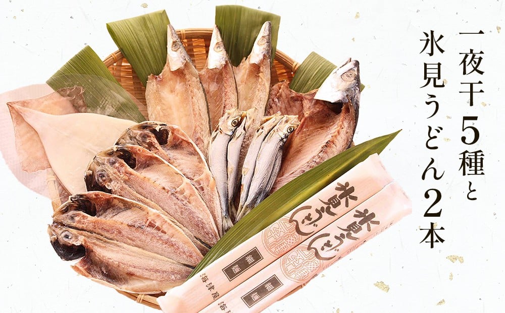 【氷見堀与】 おすすめ一夜干5種と氷見うどん2本