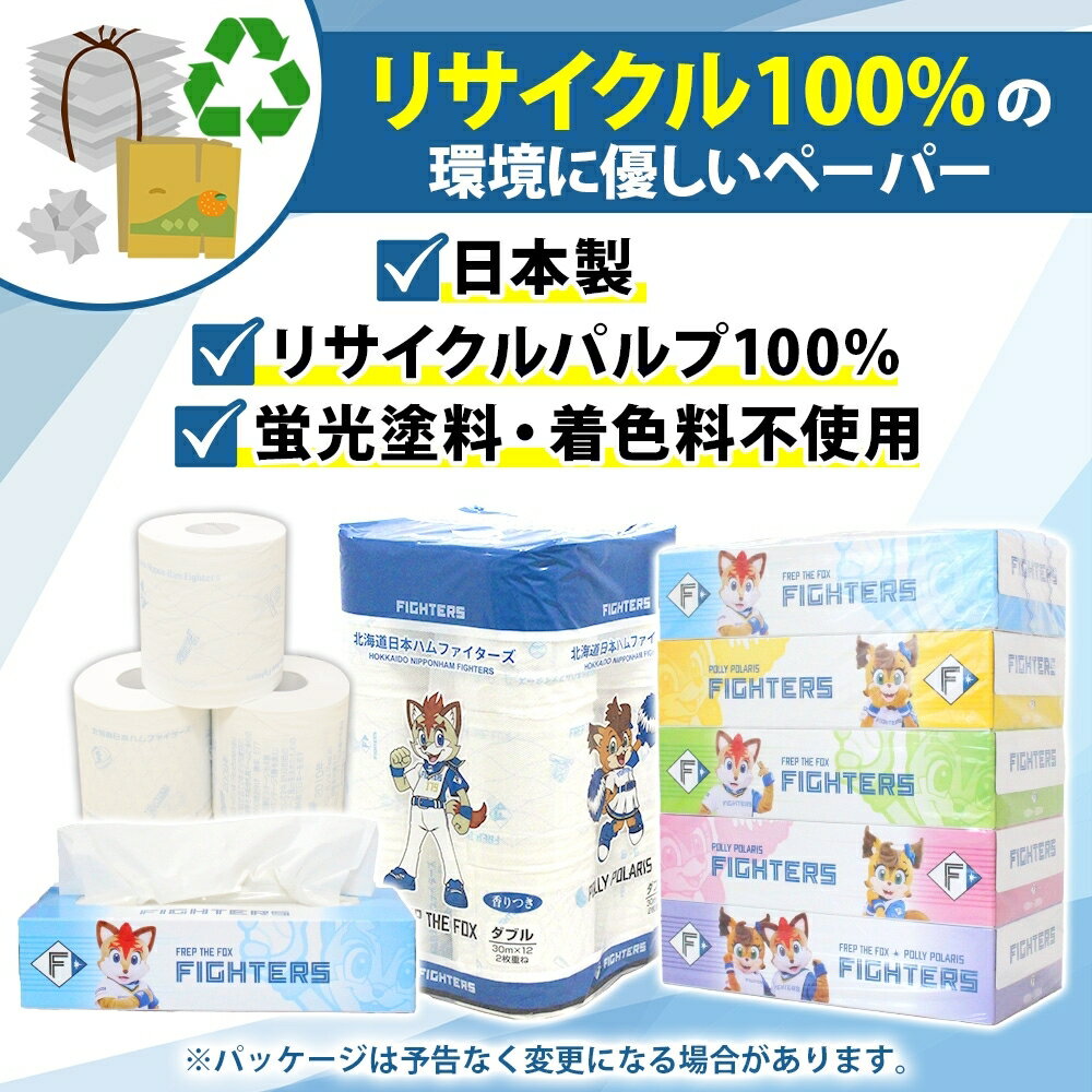 - 【ふるさと納税】 北海道日本ハムファイターズ トイレットペーパー ダブル 30m 96ロール ティッシュペーパー 200組 60箱 12パック まとめ買い 日本製 紙 日用品 常備品 消耗品 雑貨 消耗品 生活必需品 大容量 備蓄 リサイクル ペーパー 日ハム 送料無料 北海道 倶知安町